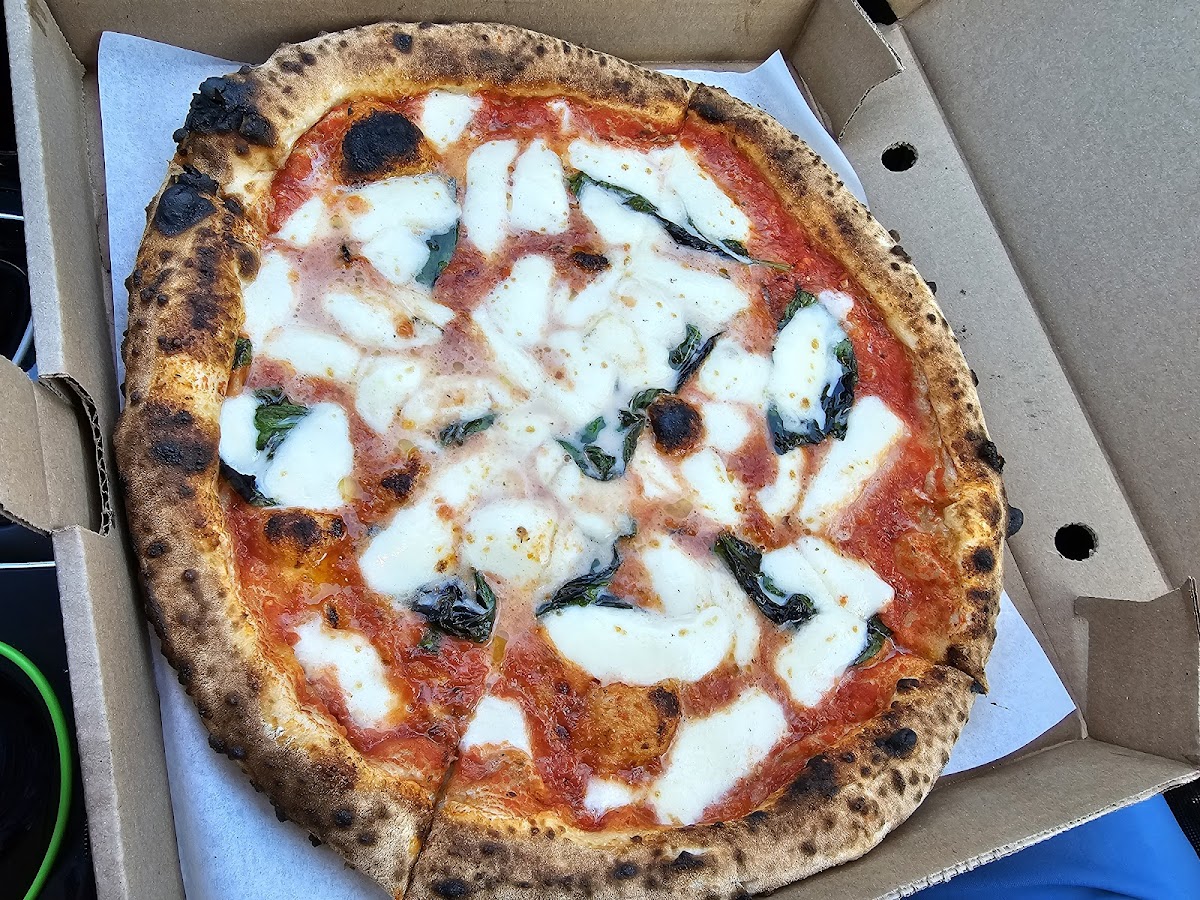 Dominic's Cucina food truck Rotating locations in Dartmouth I was told I needed to check this place out for pizza and that I wouldn't be disappointed. They were already on my list to try and since I had planned to go to Dartmouth I decided to sit and wait for them to open. Let me tell you it was worth the wait. Because it was lunch time they did only have part of their selection. So I didn't get to try one of the Pizza Bianca. Guess that means I will be back. I tried the Dino - sauce, mozzarella. Calabrese salami and genoa salami. The 2nd was the Sophia - sauce, goat cheese, roasted cherry tomatoes, red onion, NS Honey and chilli flakes. Only took about 15mins to be ready, I was also the first customer and I heard they do get busy, so timing likely would vary. When they handed me the pizzas...Wow. Pizza normally does smell good when you first get it but this smell was beyond amazing. It smelt so good that when I got in the car I had to eat a piece right away. If you do this, careful, it's hot! Toppings were good and everything went well together. The dough was soft and airy. This is definitely my new number one spot for woodfired pizza. Highly recommend. As a side note, the pizzas were under $20 each!